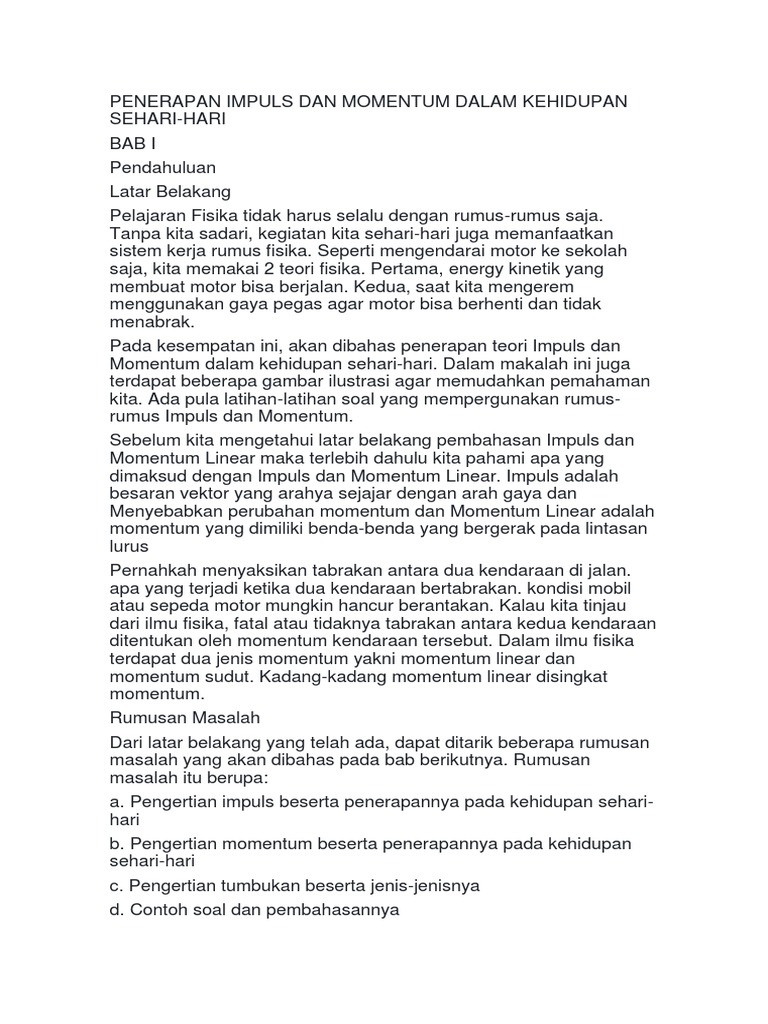 Penerapan Impuls Dan Momentum Dalam Kehidupan Sehari Pdf